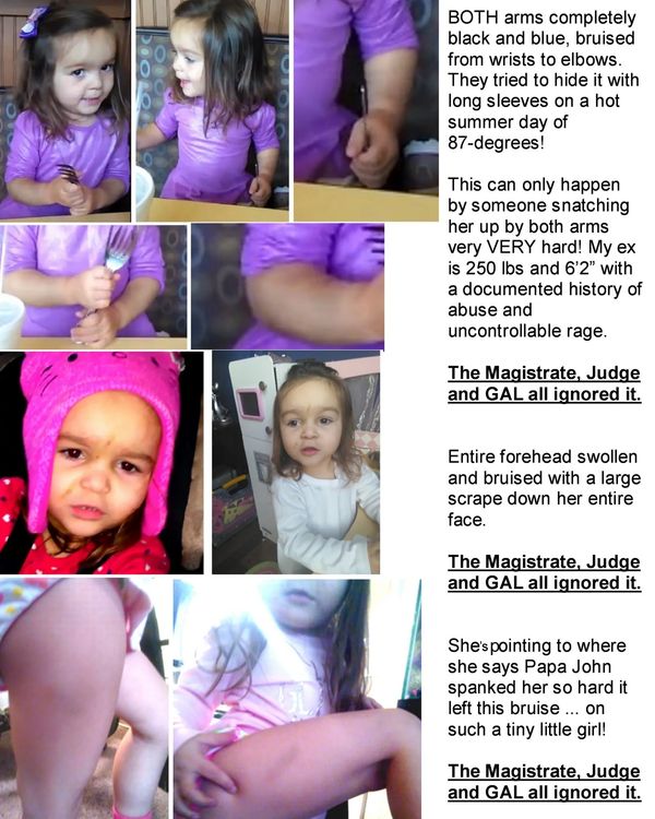 Lilly's father has filed motion after motion in that corrupt court and produced several photos of the horrific abuse to his daughter Lilly. Judge Lawson has dismissed each and every motion filed and has completely ignored the abuse to this child.